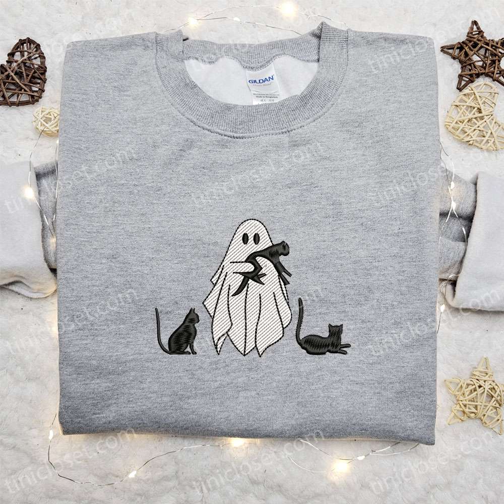 Spooky Ghost Black Cats Embroidered Sweatshirt, Halloween Embroidered Hoodie, Best Halloween Gift Ideas