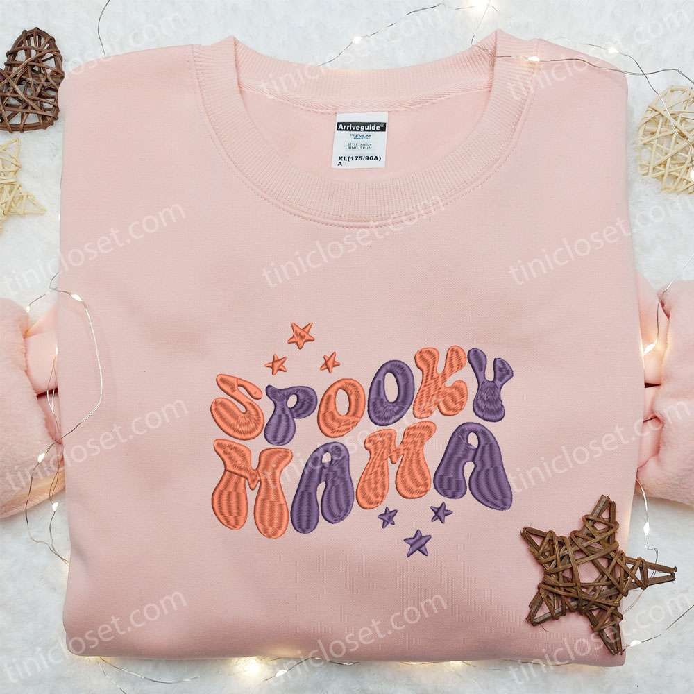 Spooky Mama Embroidered Shirt, Halloween Embroidered Shirt, Best Halloween Gift Ideas For Family