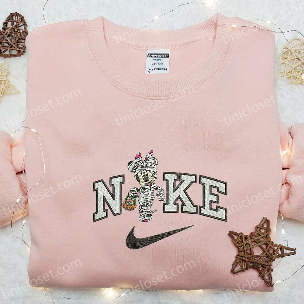 Spooky Minnie Mummy X Nike Embroidered Shirt, Disney Characters Embroidered Hoodie, Halloween Embroidered Sweatshirt