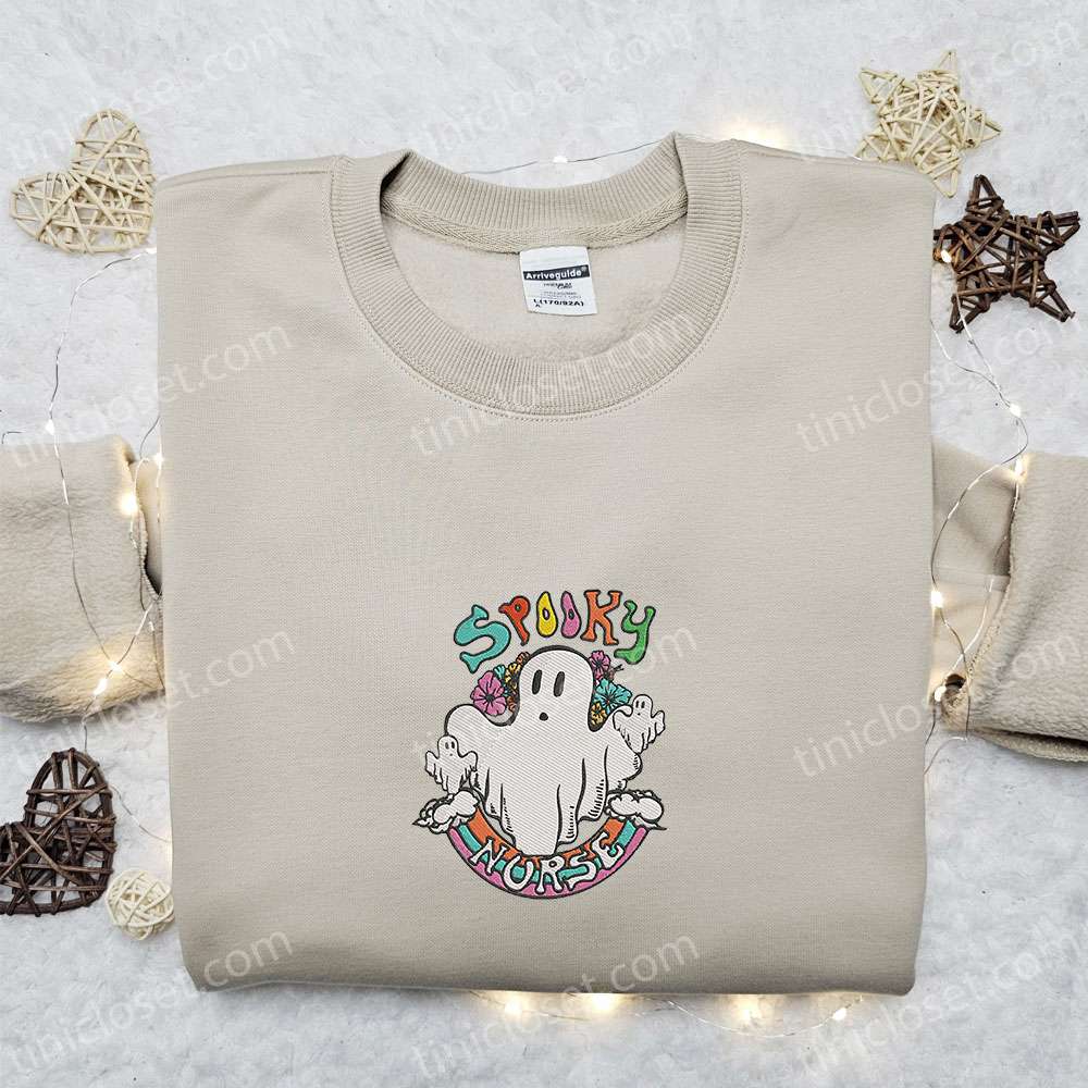 Spooky Nurse Ghost Embroidered Shirt, Vintage Halloween Embroidered Hoodie, Best Halloween Gift Ideas