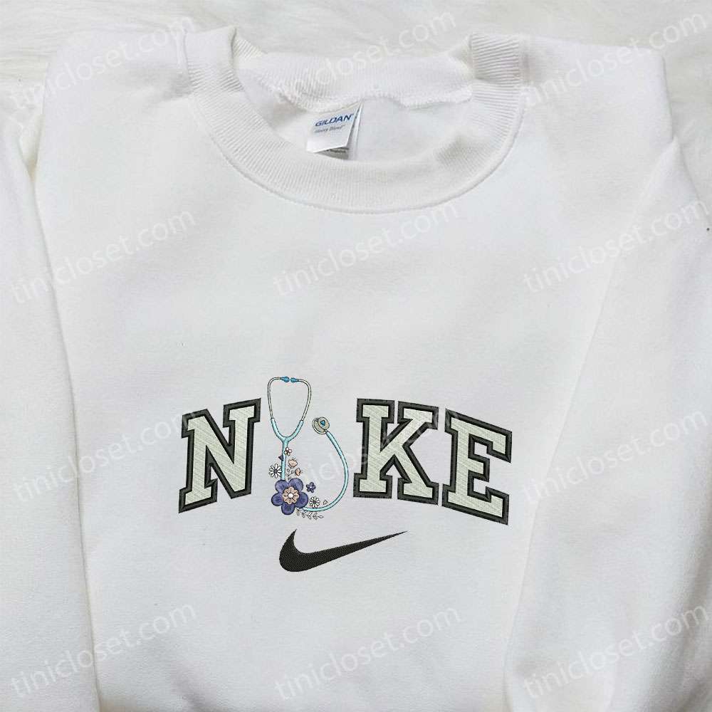 Stethoscope With Flowers X Nike Embroidered Shirt, Nike Inspired Embroidered Sweatshirt, Best Gift Ideas