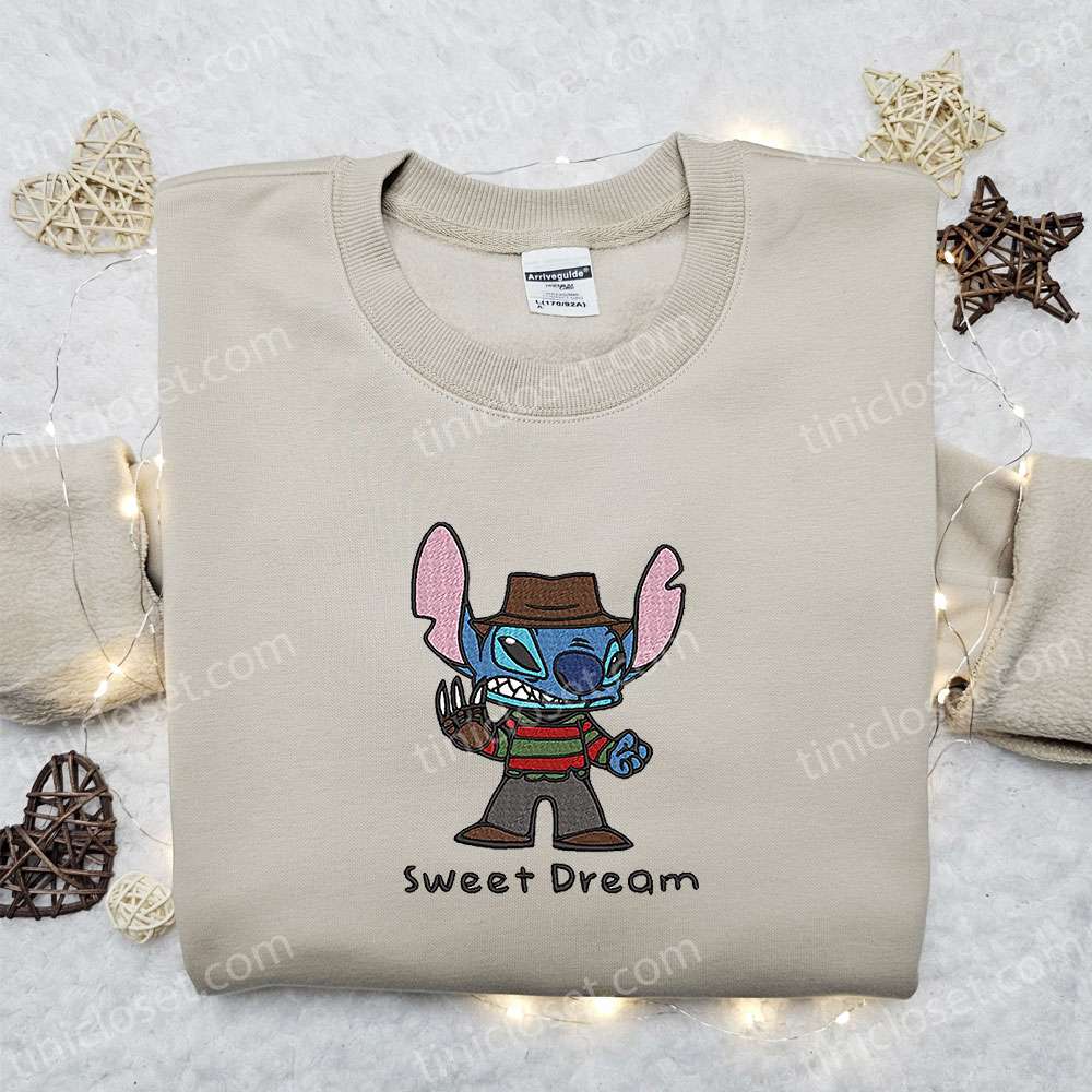Stitch Freddy Krueger Embroidered Sweatshirt, Disney Horror Movie Embroidered Shirt, Best Gift Ideas