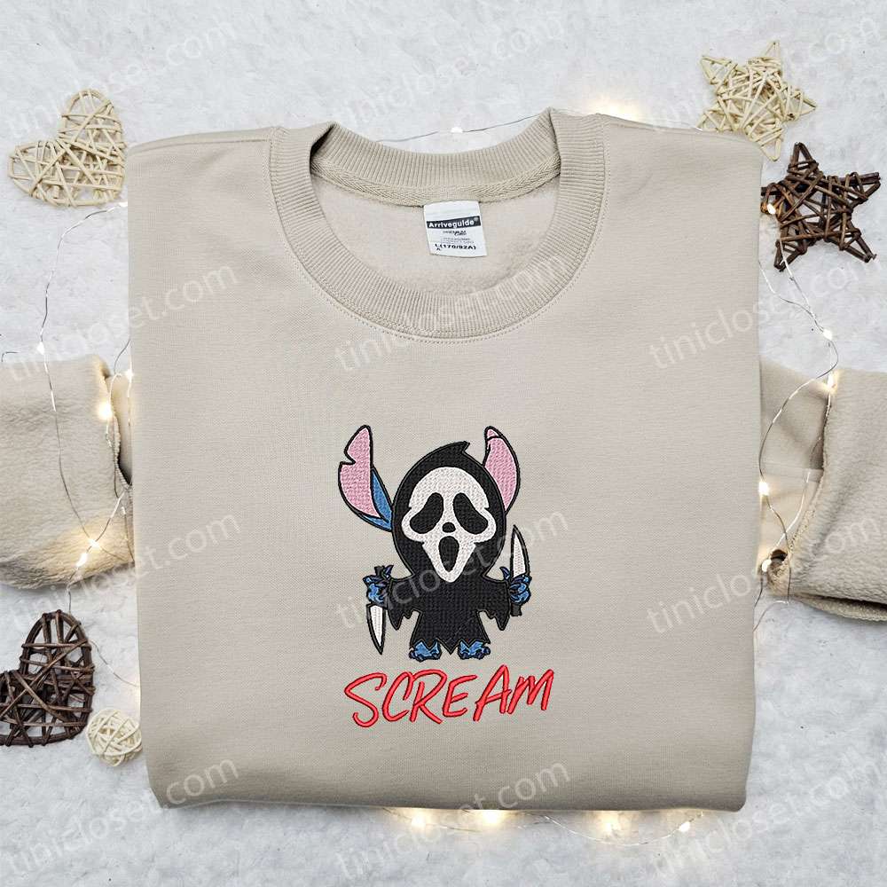 Stitch Ghost Face Embroidered Hoodie, Disney Horror Movie Embroidered T-shirt, Best Gift Ideas