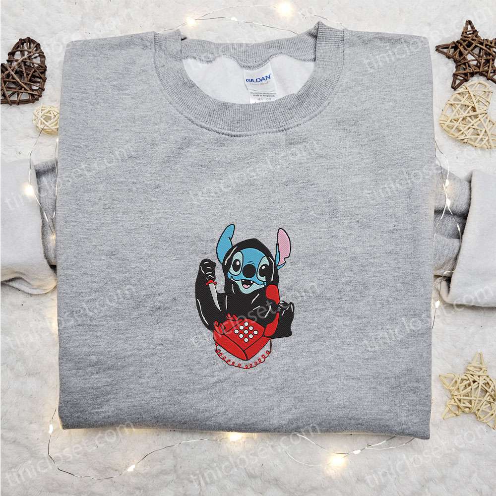 Stitch Ghostface Calling Embroidered Shirt, Disney Characters Embroidered Hoodie, Best Halloween Gift Ideas