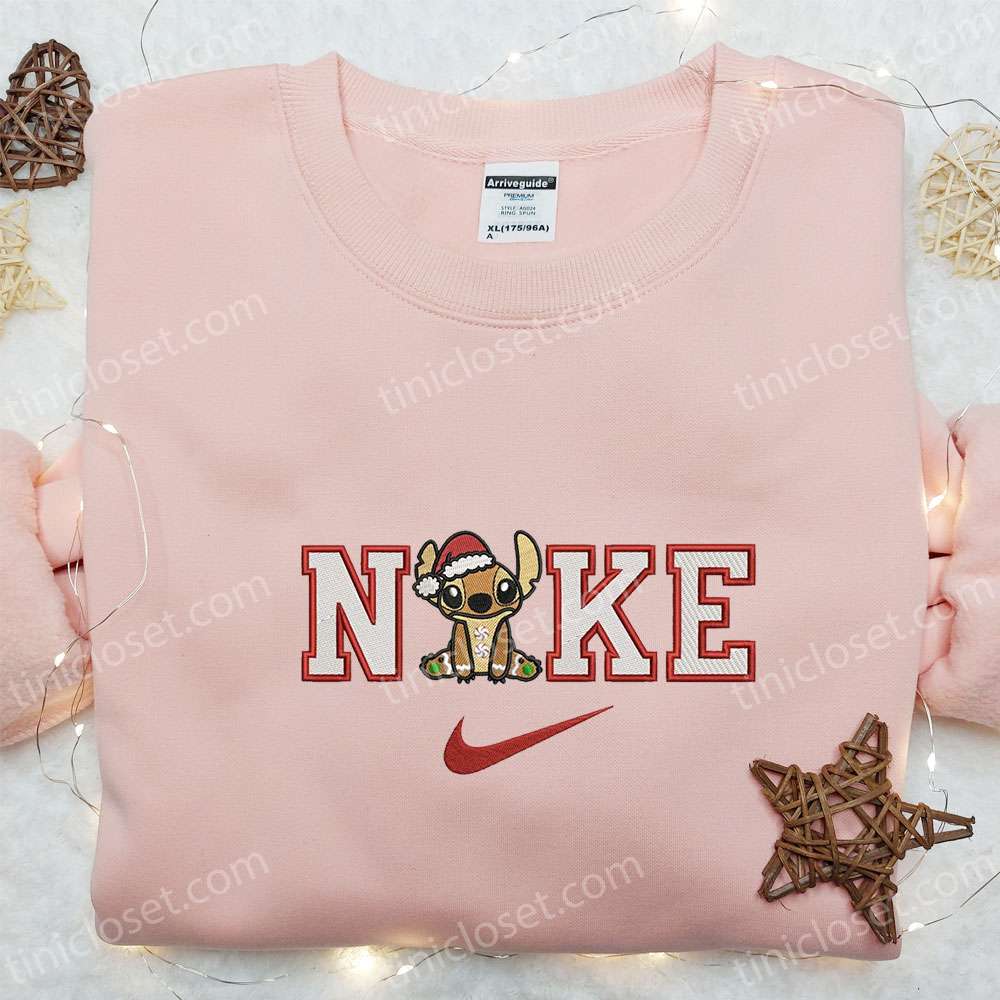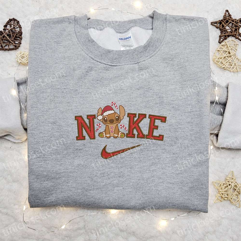 Stitch Gingerbread X Nike Christmas Embroidered Sweatshirt, Movie Merry Christmas Embroidered Shirt, Best Christmas Day Gift Ideas