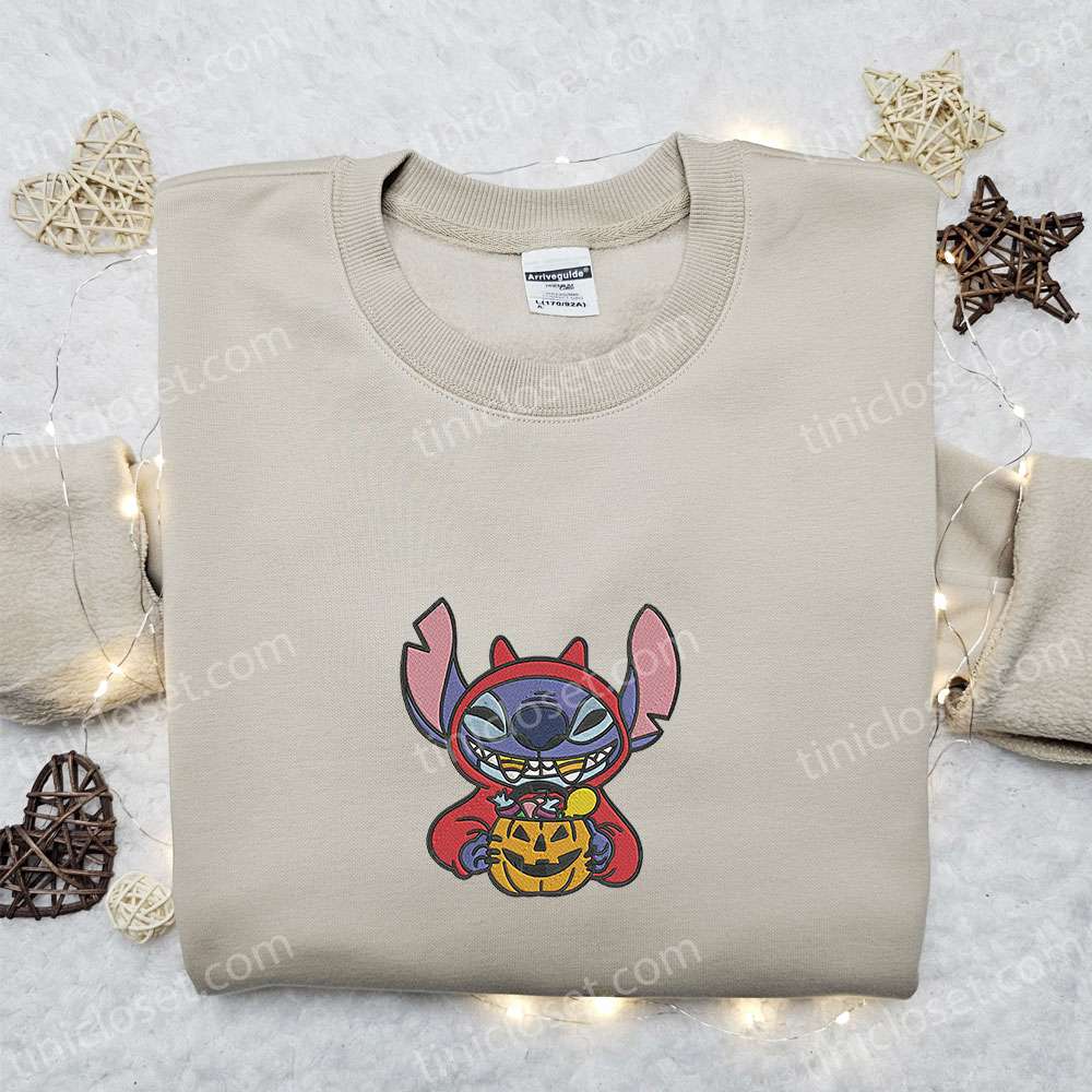 Stitch Halloween Candy Embroidered Shirt, Disney Characters Embroidered Hoodie, Best Halloween Gift Ideas