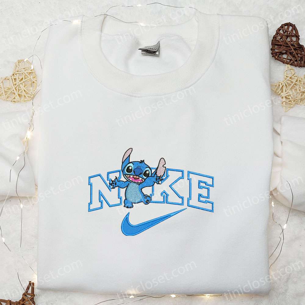 Stitch Happy X Nike Embroidered Shirt, Disney Characters Embroidered Hoodie, Nike Inspired Embroidered Sweatshirt