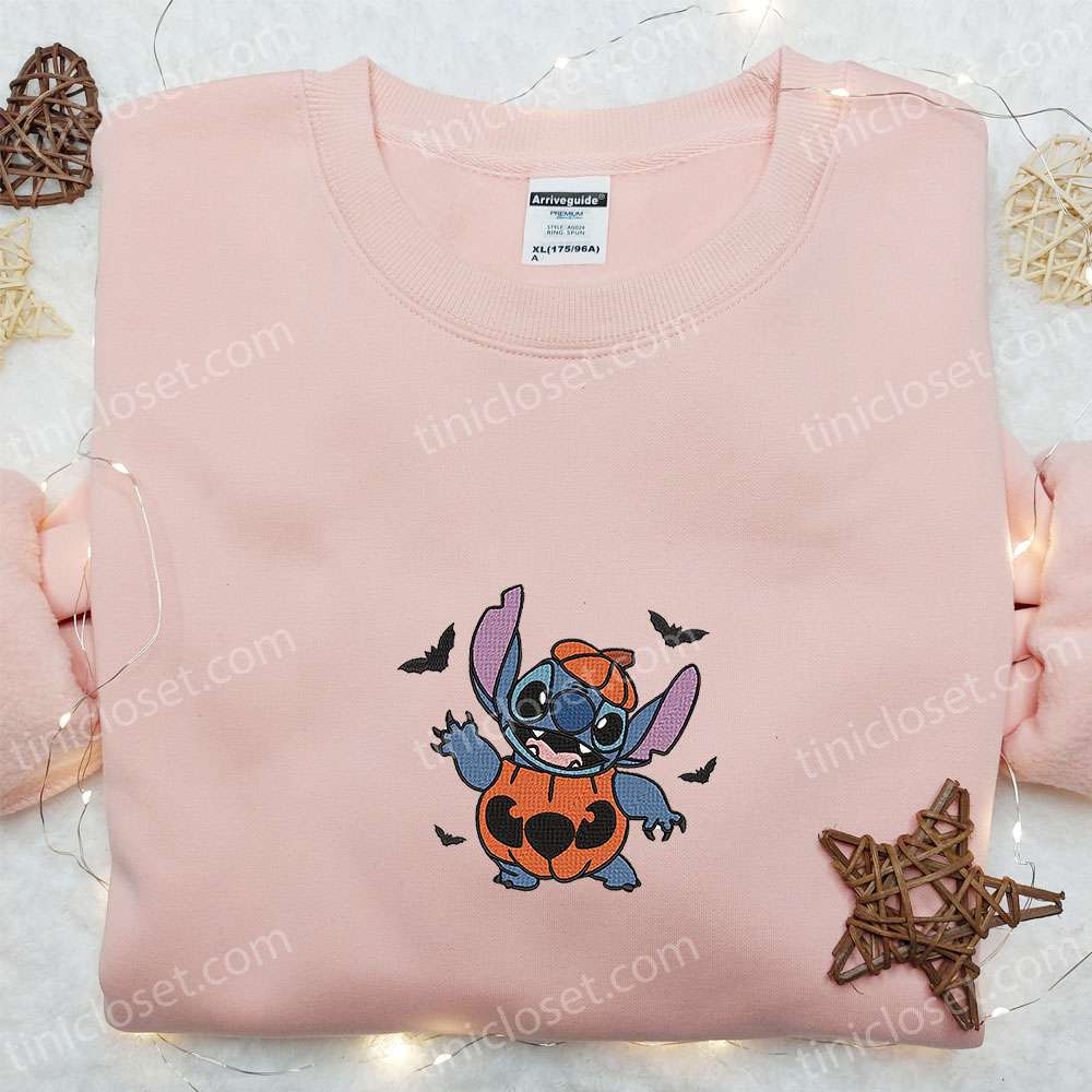 Stitch In Pumpkin Embroidered Shirt, Disney Characters Embroidered Hoodie, Best Halloween Gift Ideas