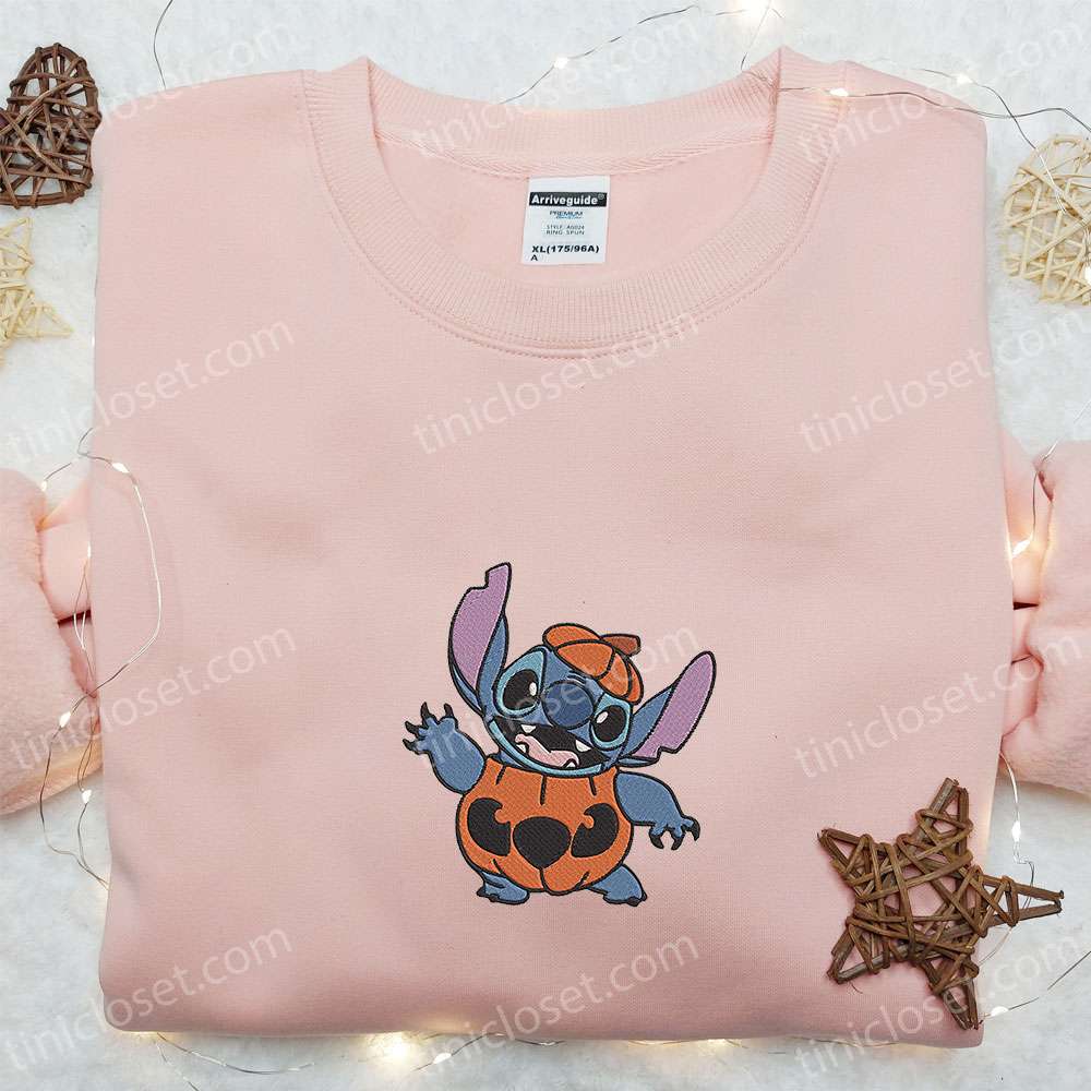 Stitch In Pumpkin Costume Embroidered Shirt, Disney Characters Embroidered Hoodie, Best Halloween Gift Ideas