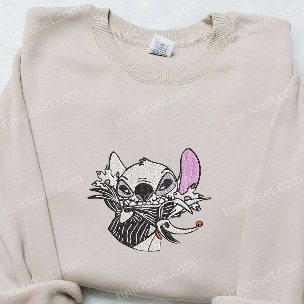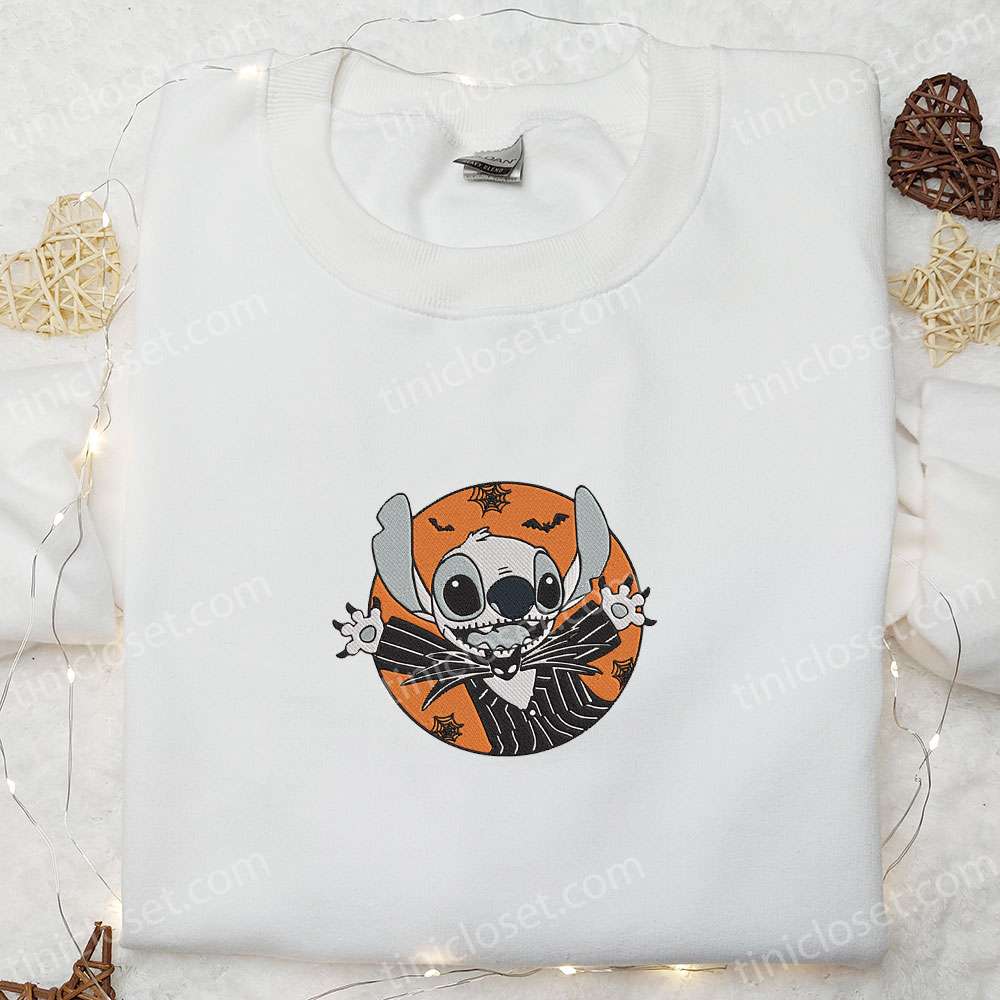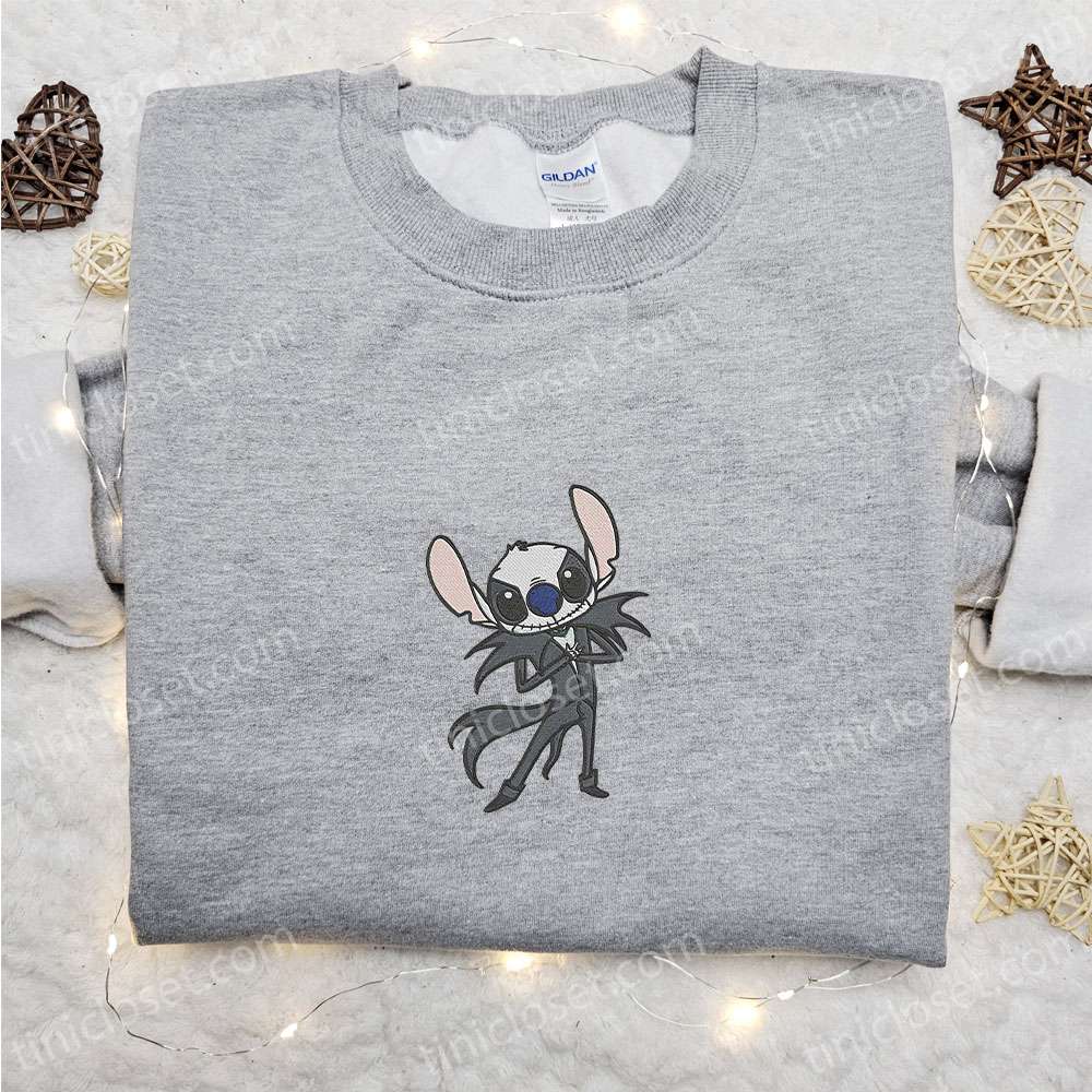 Stitch Jack Skellington Embroidered Shirt, The Nightmare Before Christmas Embroidered Hoodie, Best Halloween Gift Ideas