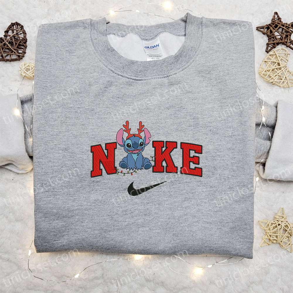 Stitch Reindeer Disney Xmas X Nike Embroidered Sweatshirt, Christmas Embroidered Shirt, Best Christmas Gift Ideas