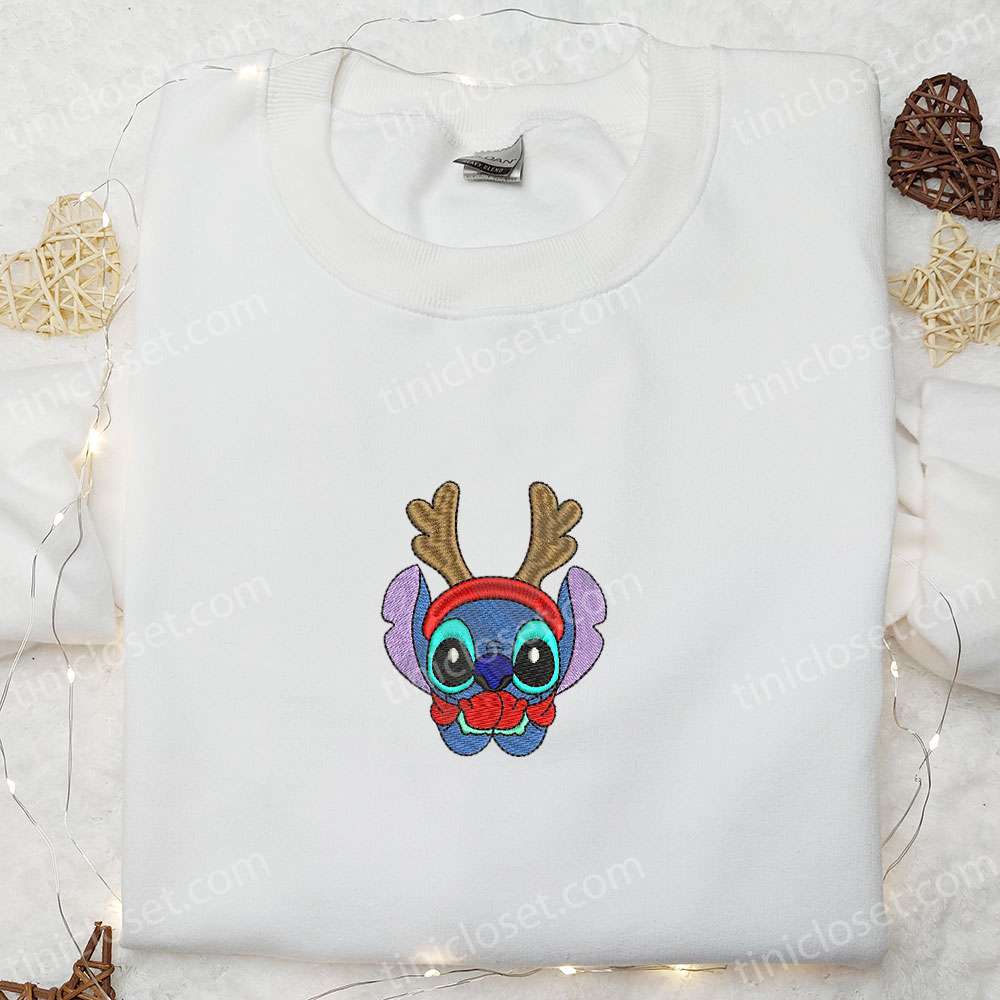 Stitch Reindeer Embroidered Shirt, Disney Characters Embroidered Hoodie, Christmas Embroidered Shirt