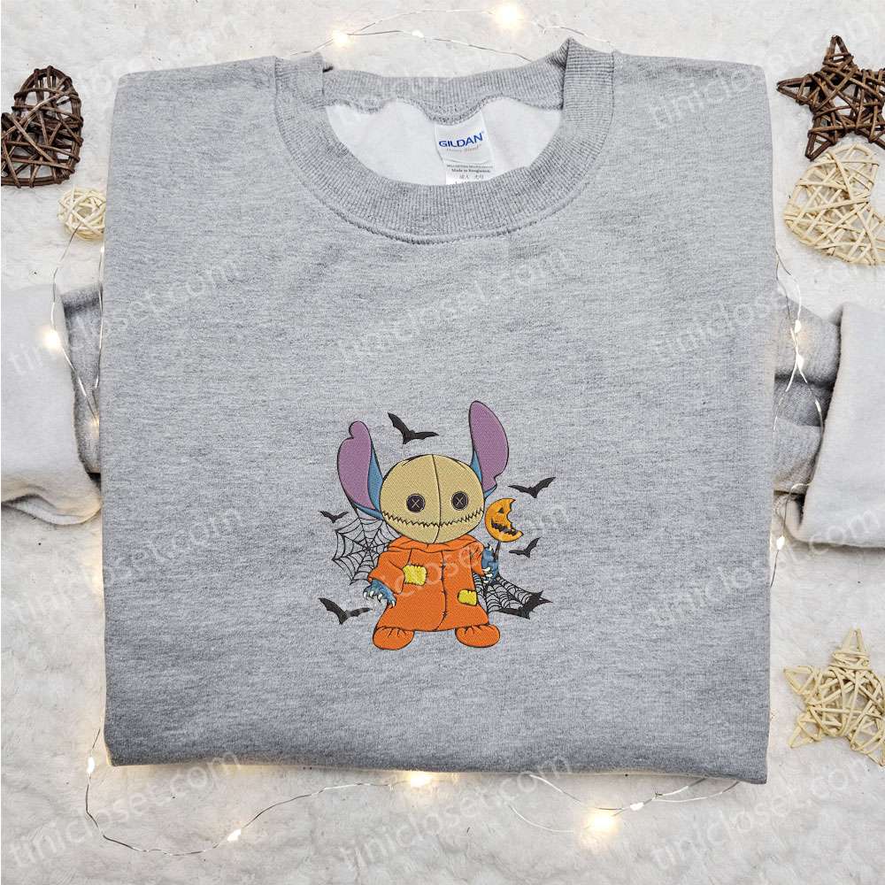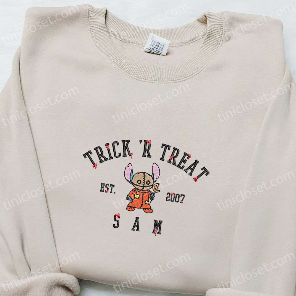 Stitch Sam Trick Or Treat Embroidered Shirt, Disney Characters Embroidered Hoodie, Best Halloween Gift Ideas