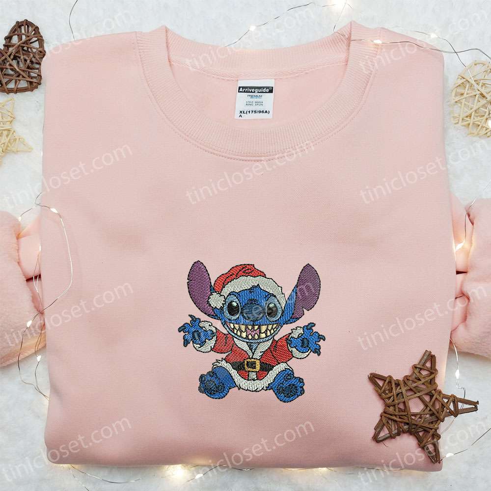 Stitch Santa Embroidered Shirt, Disney Characters Embroidered Hoodie, Christmas Embroidered Shirt