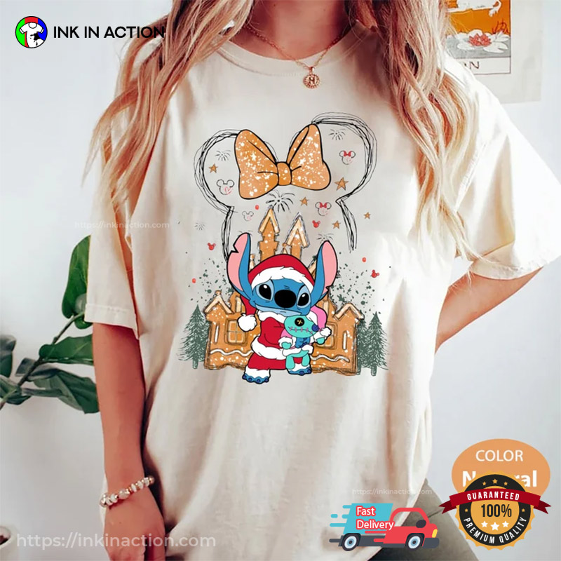 Stitch Santa Gingerbread Castle Disneyland Christmas T-shirt