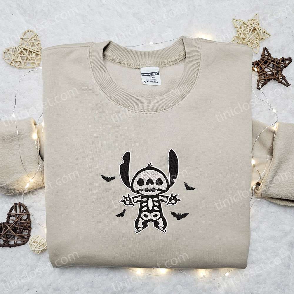 Stitch Skeleton Bats Embroidered Sweatshirt, Lilo And Stitch Disney Spooky Embroidered Sweatshirt, Best Gift Ideas For Family