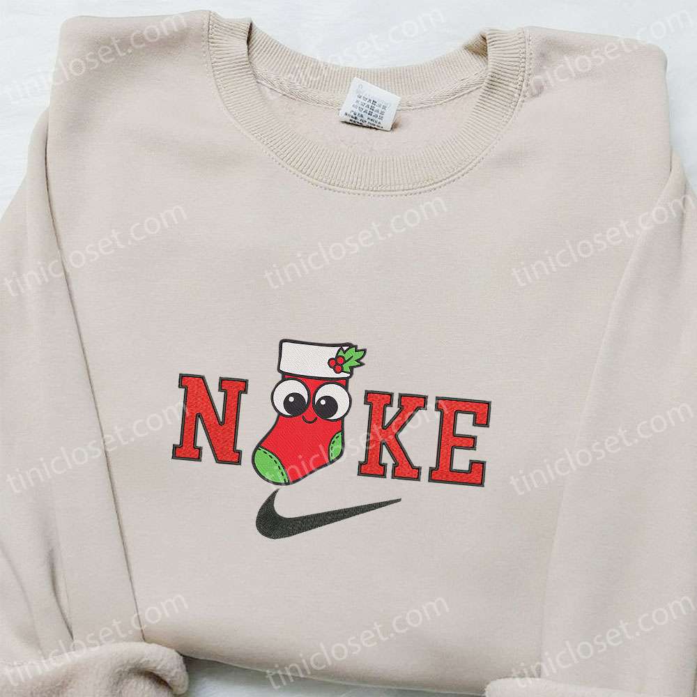 Stocking Christmas X Nike Christmas Embroidered Sweatshirt, Christmas Embroidered Shirt, Best Christmas Gift Ideas