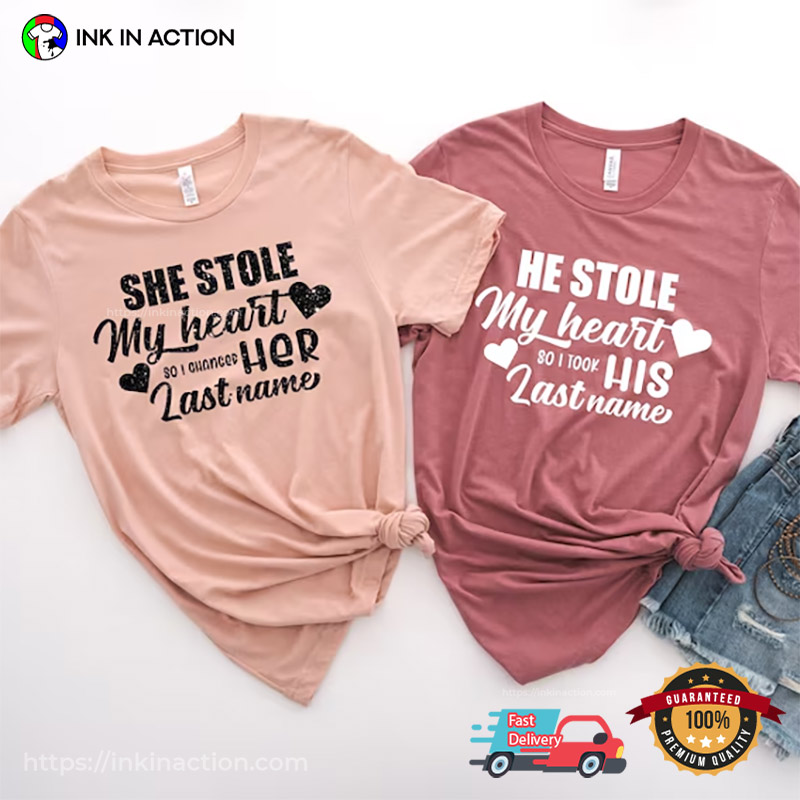 Stole My Heart Matching Couple Valentines Tee