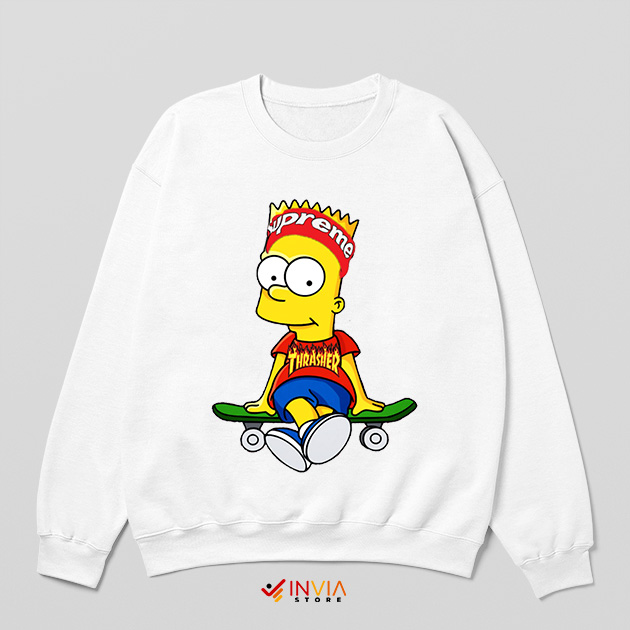 Style Trippy Bart Simpson Skate White Sweatshirt