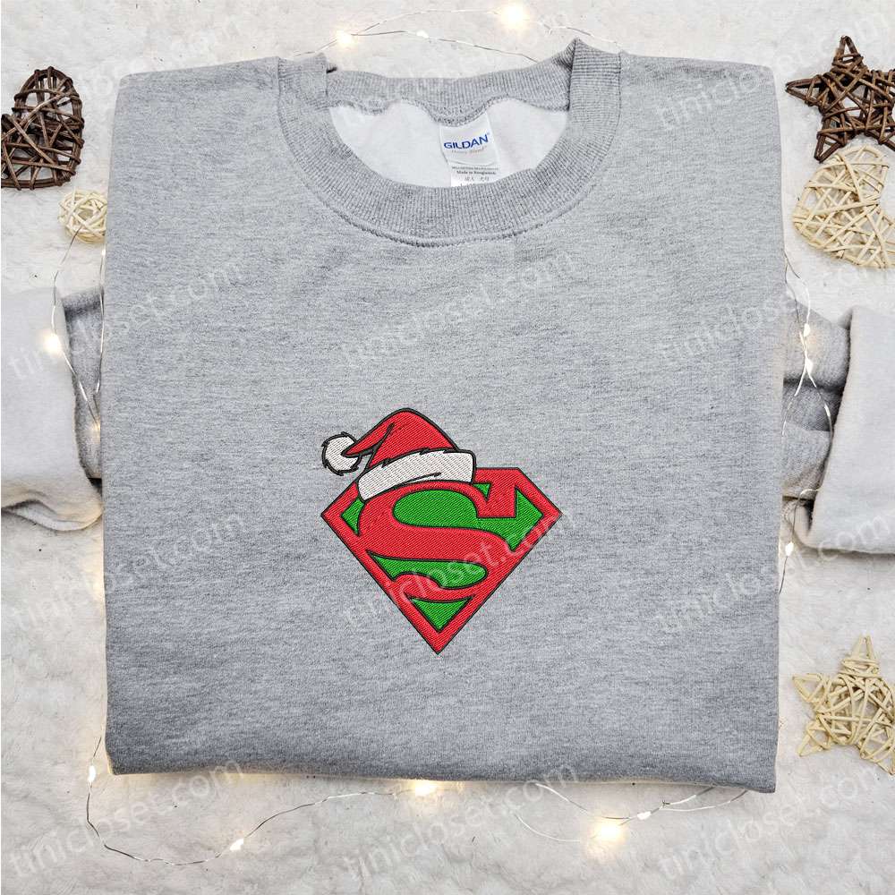 Superman Logo Christmas Hat Embroidered Shirt, Christmas Embroidered Hoodie, Best Gifts For Family