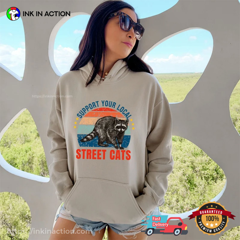 Support Local Street Cat, Cute Raccoon Retro Shirt
