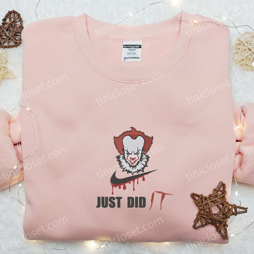 Swoosh X Pennywise Just Did It Embroidered Sweatshirt, It Horror Movie Embroidered Shirt, The Best Halloween Gift