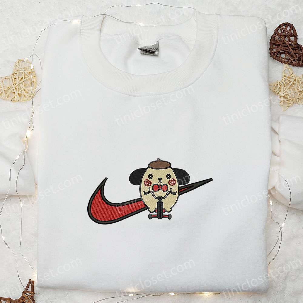 Swoosh X Pompompurin Jigsaw Embroidered Sweatshirt, Nike Inspired Embroidered Shirt, Funny Horror Halloween Embroidered T-shirt