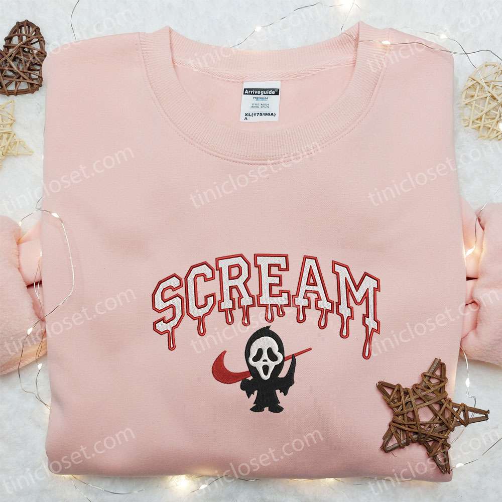 Swoosh X Scream Ghostface Embroidered Sweatshirt, Horror Movie Embroidered Shirt, Best Gift Ideas For All Occasions
