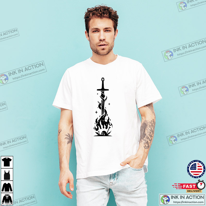 Sword On Fire Bonfire At Night T-shirt