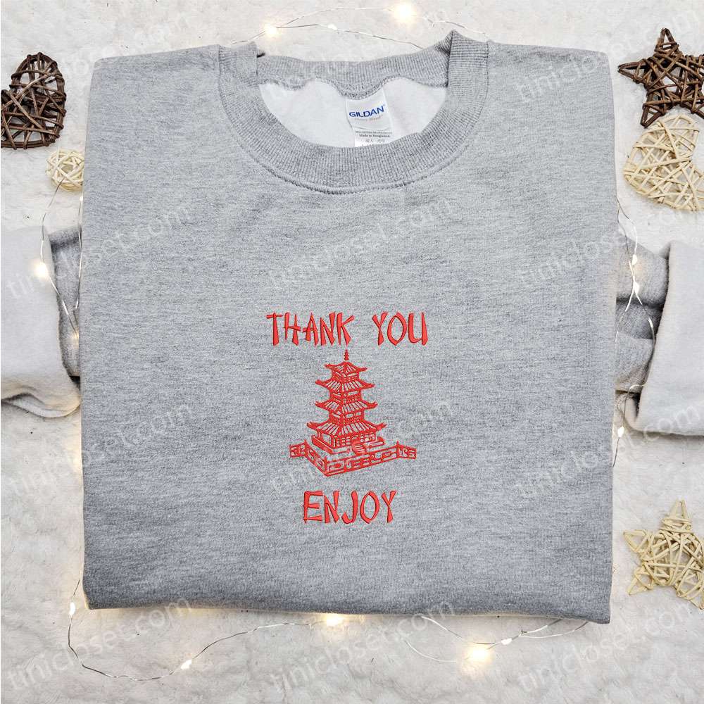 Thank You Enjoy Temple Embroidered Shirt, Custom Embroidered Sweatshirt, Best Gift Ideas