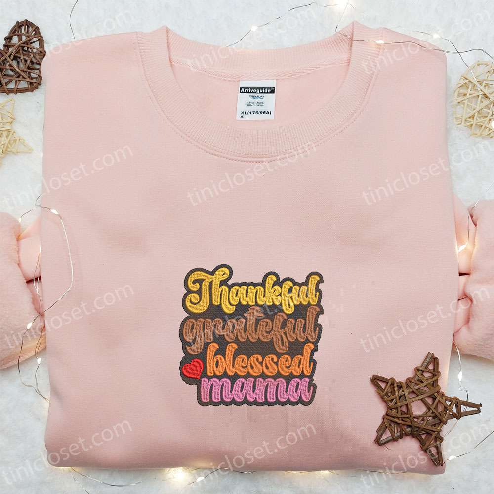 Thankful Grateful Blessed Mama Autumn Embroidered Hoodie, Custom Embroidered T-shirt, Best Gift Ideas For Moms