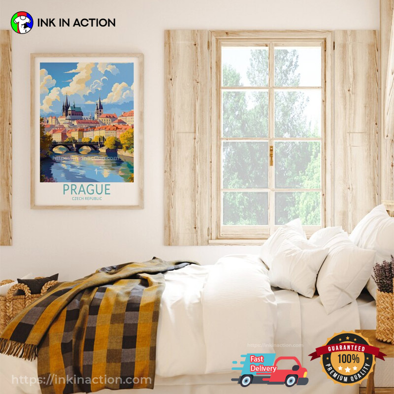 The City Of A Hundred Spires Charles Bridge Prague Watercolors Painting Wall Art