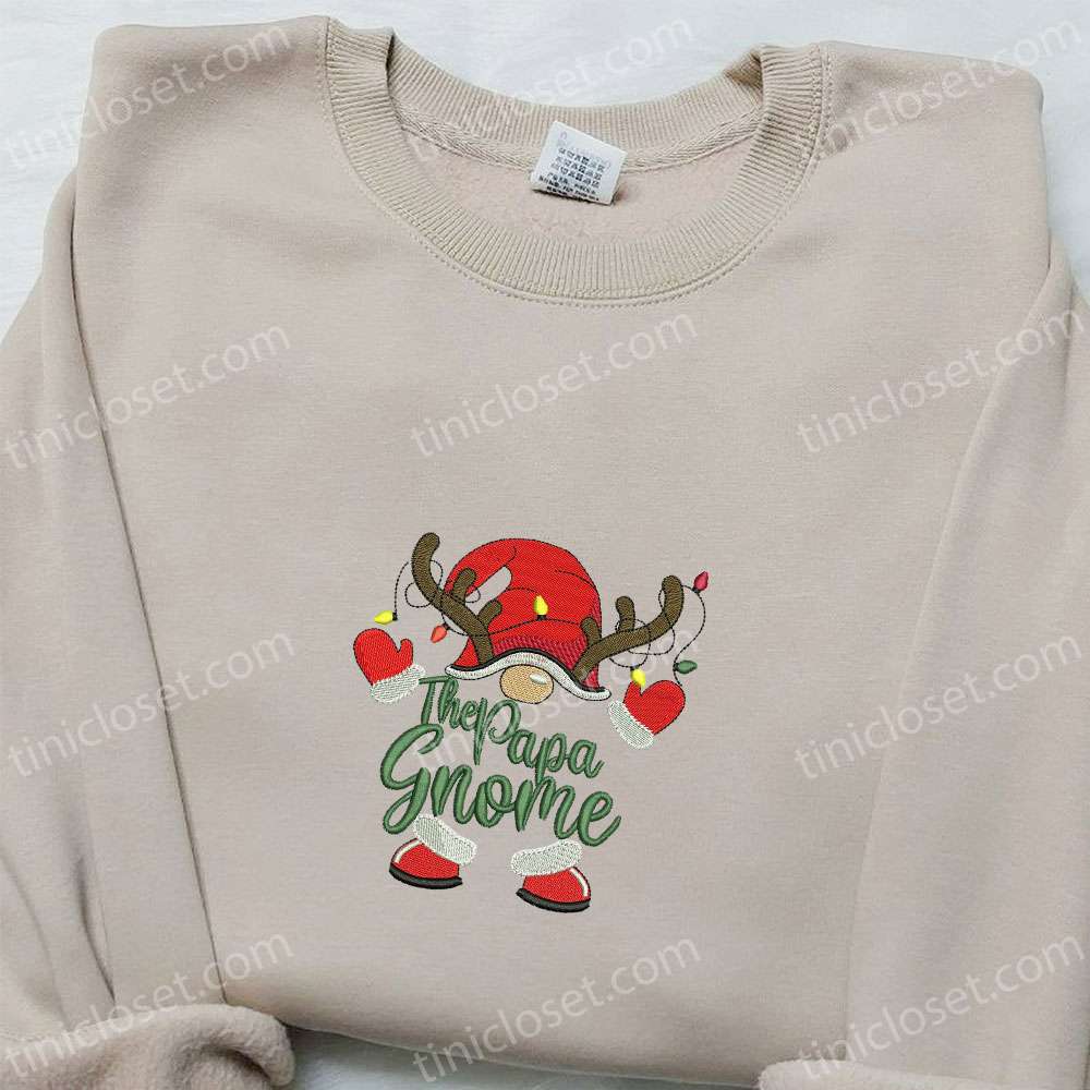 The Papa Gnome Embroidered Shirt, Christmas Embroidered Hoodie, Best Gifts For Family