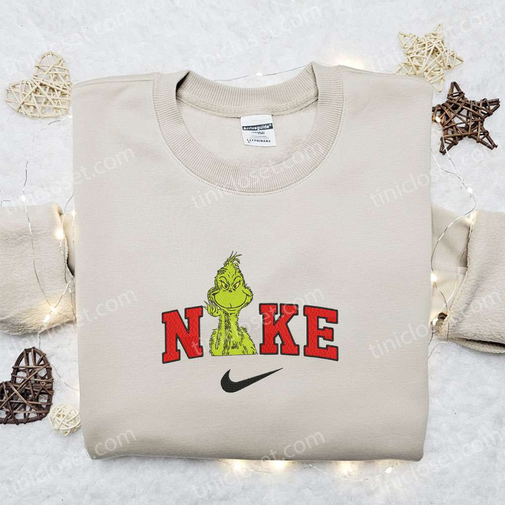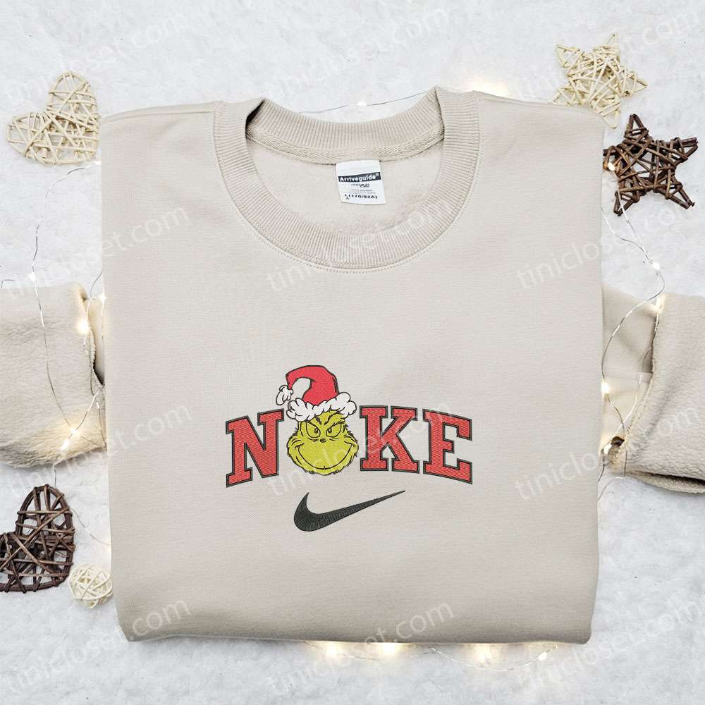 The Villain Grinch X Nike Christmas Embroidered Sweatshirt, Villain Characters Merry Christmas Embroidered Shirt, Best Christmas Day Gift Ideas