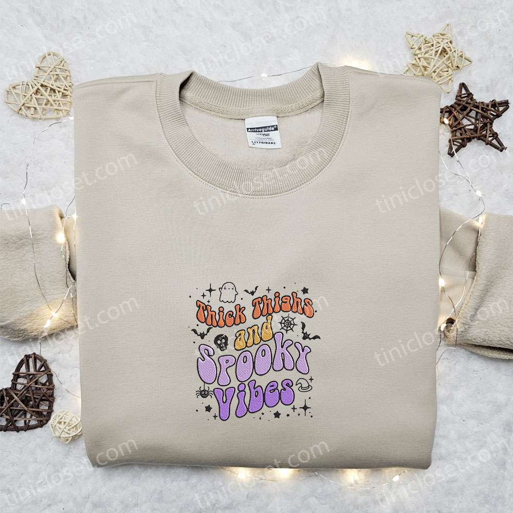 Thick Thighs And Spooky Vibes Embroidered Shirt, Halloween Embroidered Hoodie, Best Gifts For Family