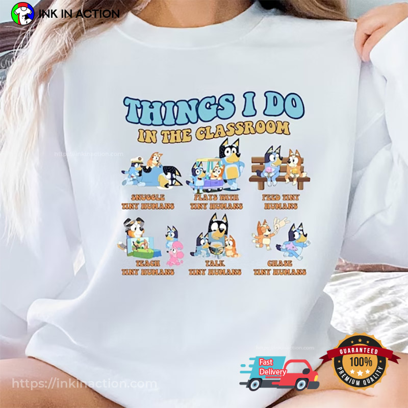 Things I Do In The Classroom Blue Dog, Bluey And Friends Shirt