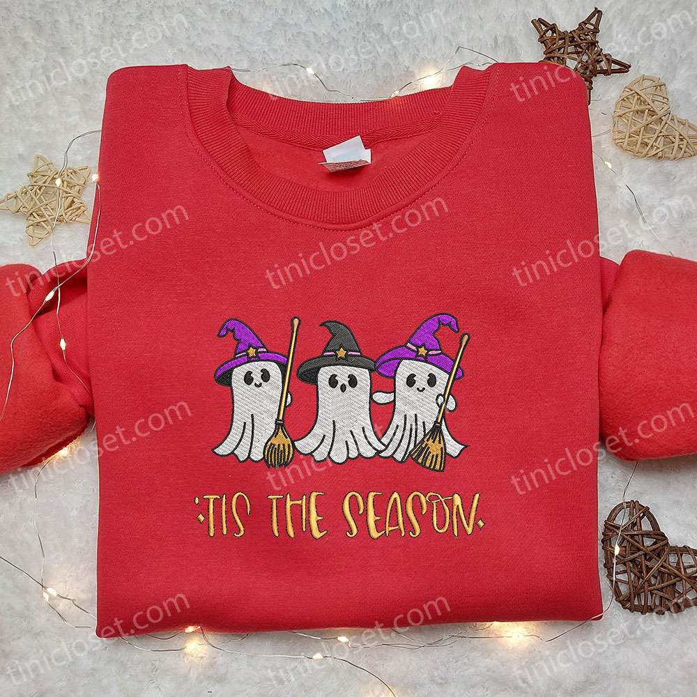 Tis The Season Witch Ghosts Embroidered Shirt, Cute Halloween Embroidered Hoodie, Best Halloween Gift Ideas