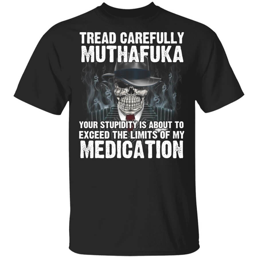 Tread Carefully Muthafuka Your Stupidity Is About To Exceed The Limits Of My Medication T Shirts Hoodies Long Sleeve
