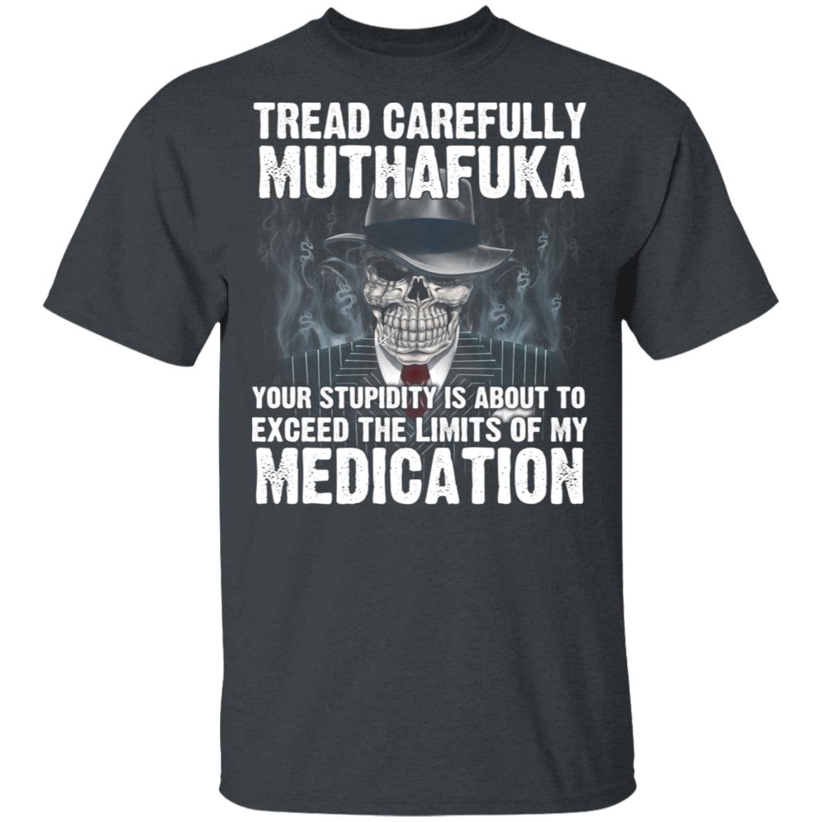 Tread Carefully Muthafuka Your Stupidity Is About To Exceed The Limits Of My Medication T-shirt