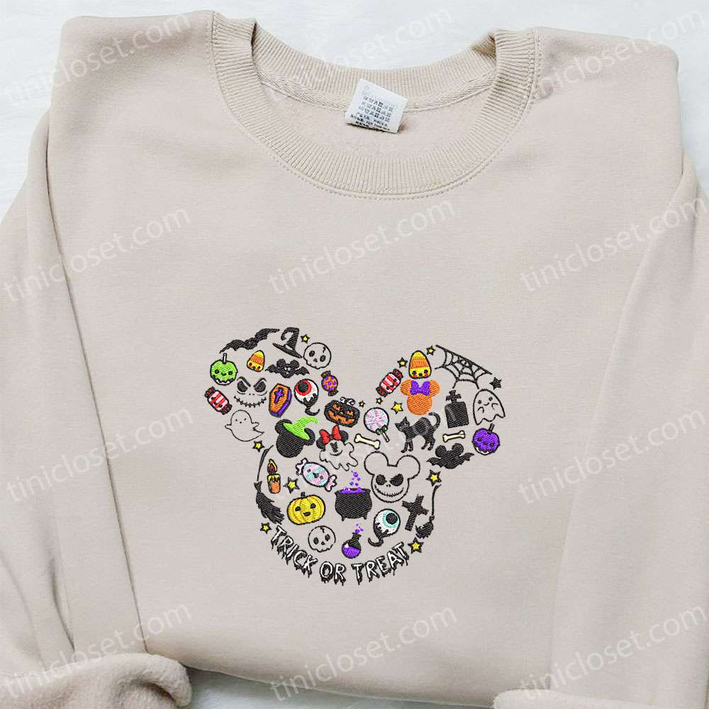 Trick Or Treat Mickey Disney Elements Embroidered Shirt, Disney Characters Embroidered Hoodie, Best Halloween Gift Ideas