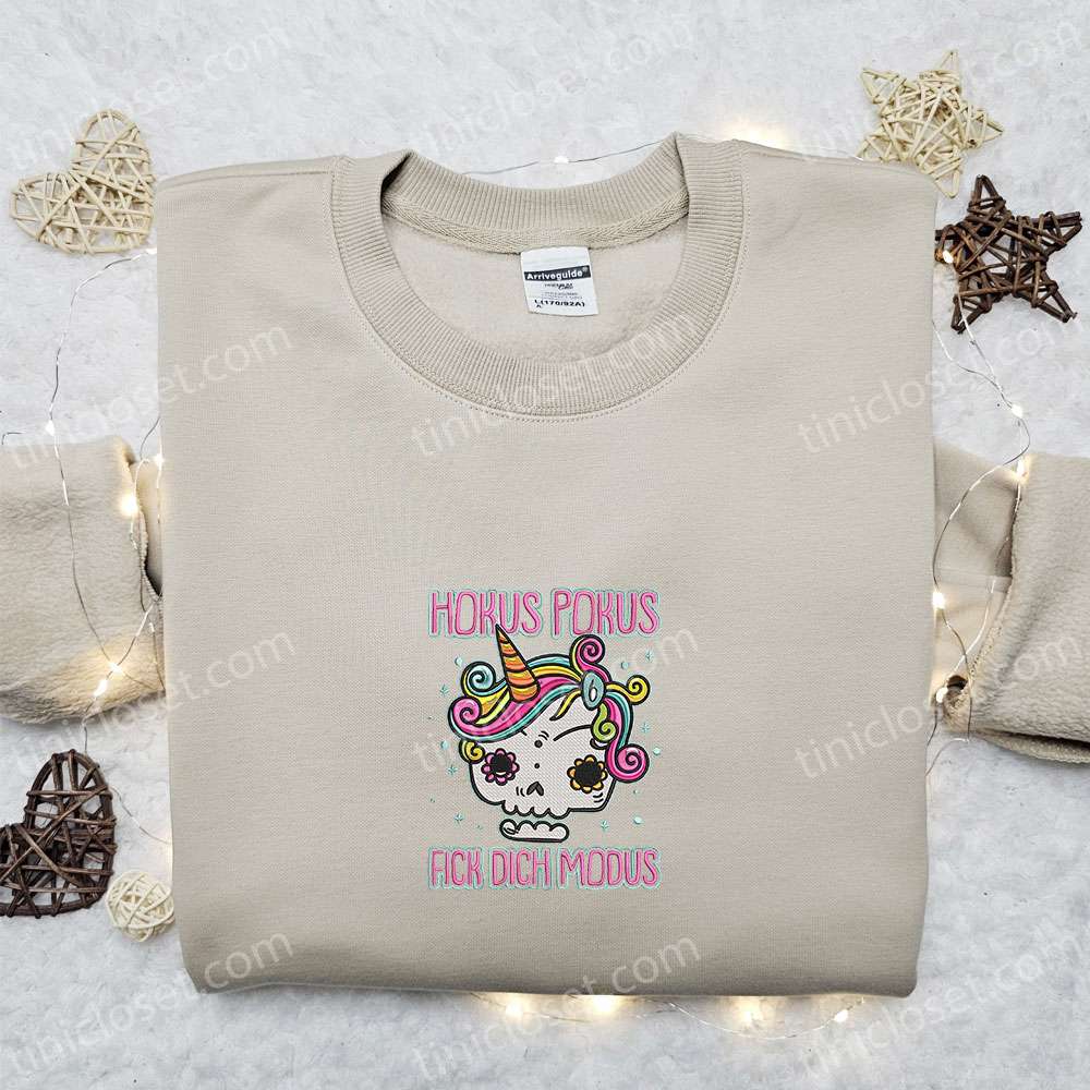 Unicorn Hokus Pokus Fick Dich Modus Embroidered Sweatshirt, Halloween Embroidered Hoodie, Best Halloween Gift Ideas