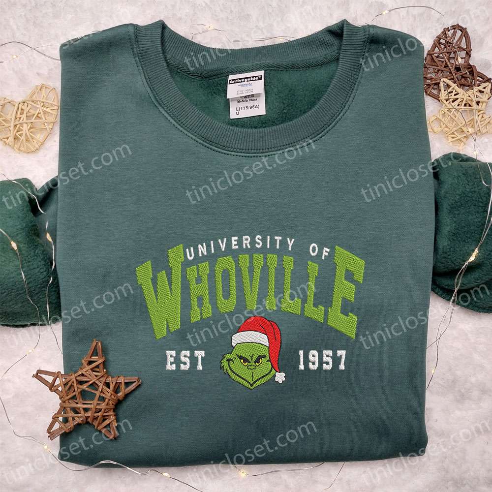 University Of Whoville Est 1957 Grinch Embroidered Shirt, Christmas Embroidered Hoodie, Best Gifts For Family