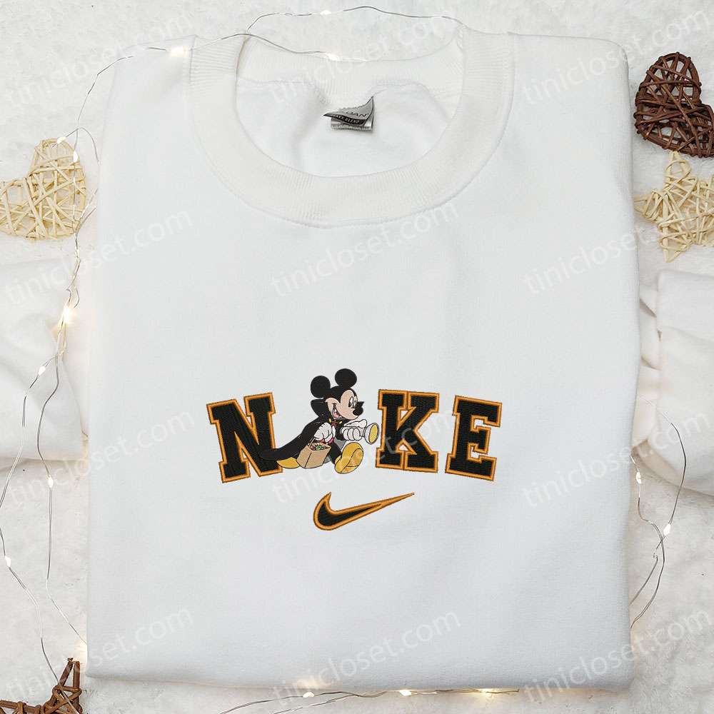 Vampire Costume Halloween Masquerade Mickey Mouse X Nike Embroidered Shirt, Trick Or Treat Embroidered Sweatshirt, Cute Halloween Embroidered Hoodie