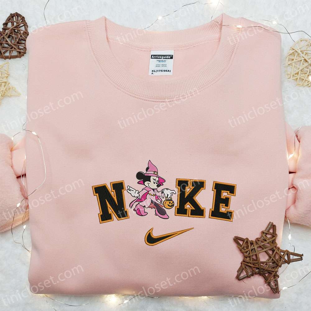 Vampire Costume Halloween Masquerade Minnie Mouse X Nike Embroidered Shirt, Trick Or Treat Embroidered Sweatshirt, Cute Halloween Embroidered Hoodie