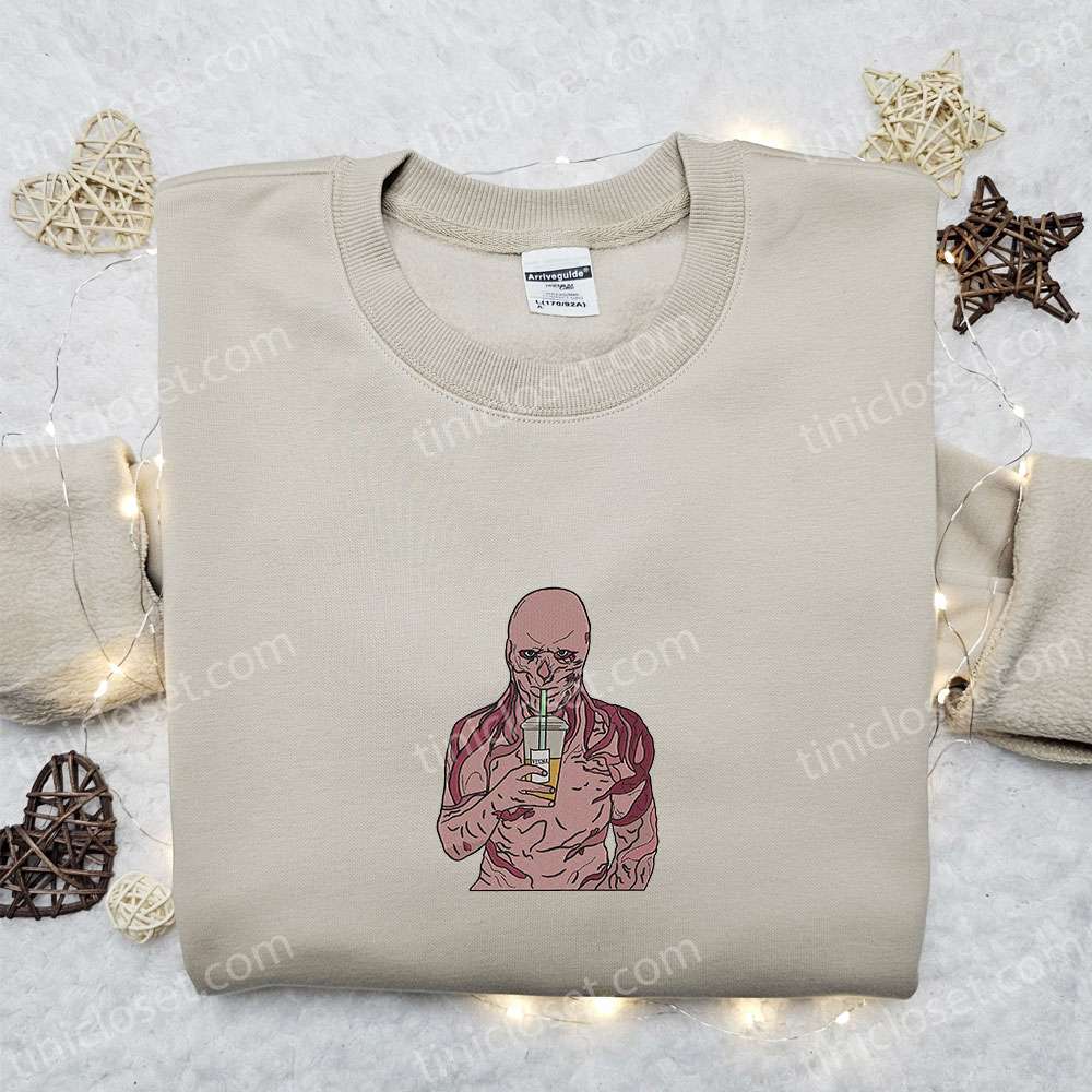 Vecna Drinking Coffee Embroidered Sweatshirt, Halloween Embroidered Hoodie, Best Halloween Gift Ideas