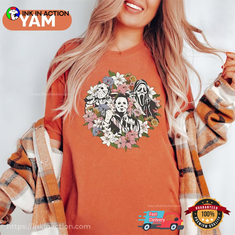 Vintage Floral Horror Movie Characters Comfort Colors Tee
