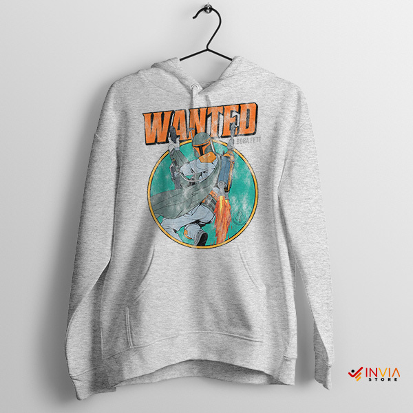 Vintage Star Wars Boba Fett Wanted Sport Grey Hoodie