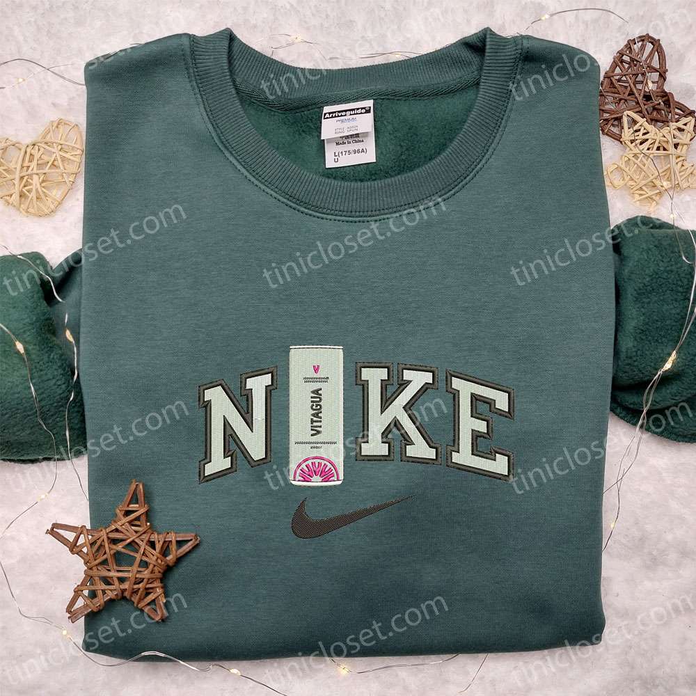 Vitagua Can X Nike Embroidered Shirt, Favorite Food And Drink Embroidered Hoodie, Nike Inspired Embroidered Sweatshirt