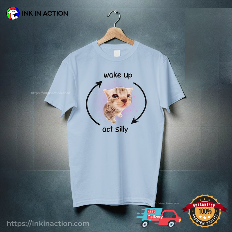 Wake Up Act Silly Adorable Kitty Meme T-shirts