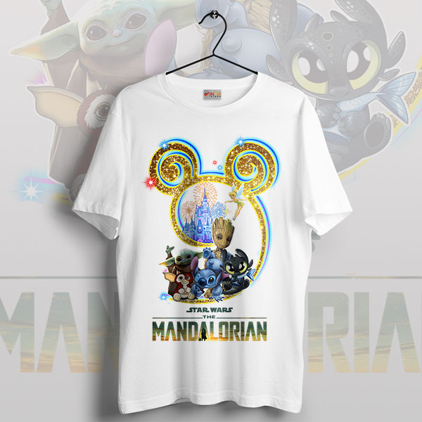 Adorable Baby Yoda And Disney Friends White T-shirt